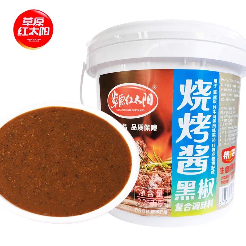 草原红太阳烧烤酱黑椒2.25kg桶餐饮装烤肉烤蔬菜调味料刷酱牛排酱