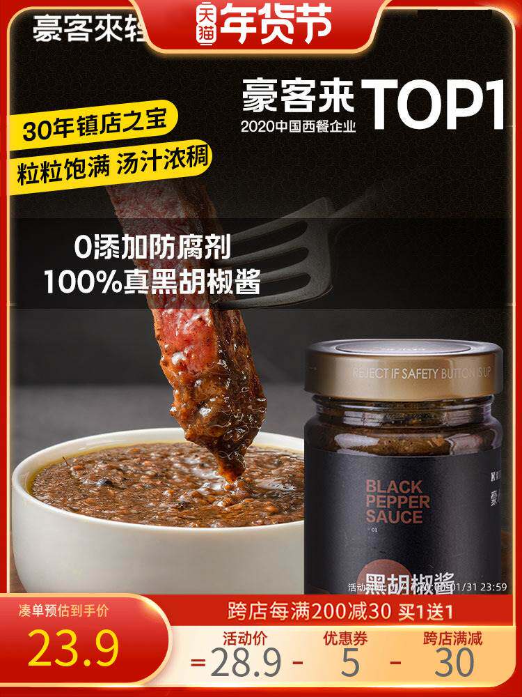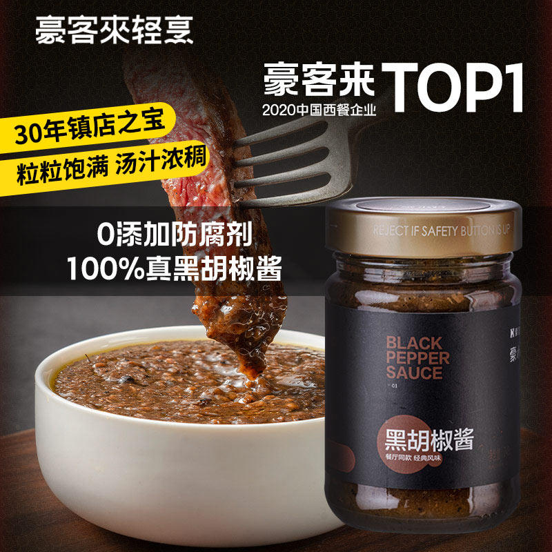【豪客来】黑胡椒酱餐厅黑椒汁家用牛排酱煎牛排意大利面酱黑椒酱