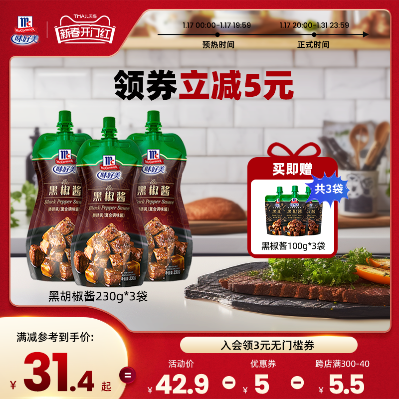 【加赠300g】味好美黑胡椒酱230g*3包黑椒牛排烧烤酱甜辣酱调料