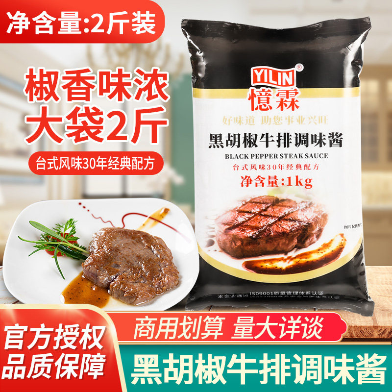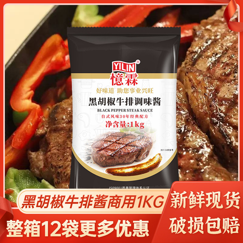 忆霖黑胡椒牛排调味酱1kg 憶霖酱料烤肉蘸酱黑椒酱商用意大利面酱