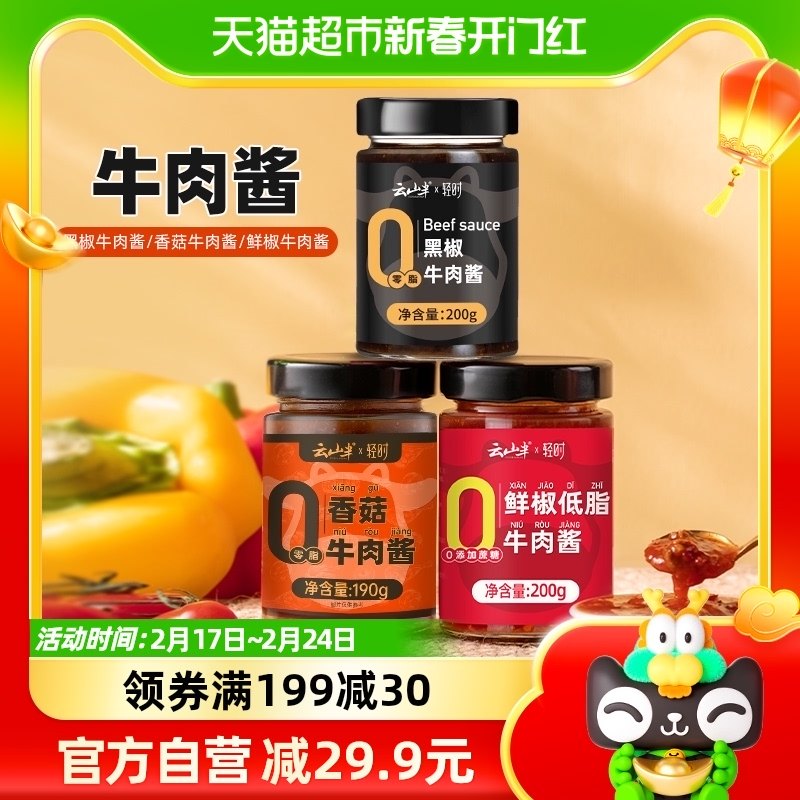 【包邮】云山半3瓶低零0脂肪鲜椒黑椒香菇牛肉酱辣椒酱辣酱组合