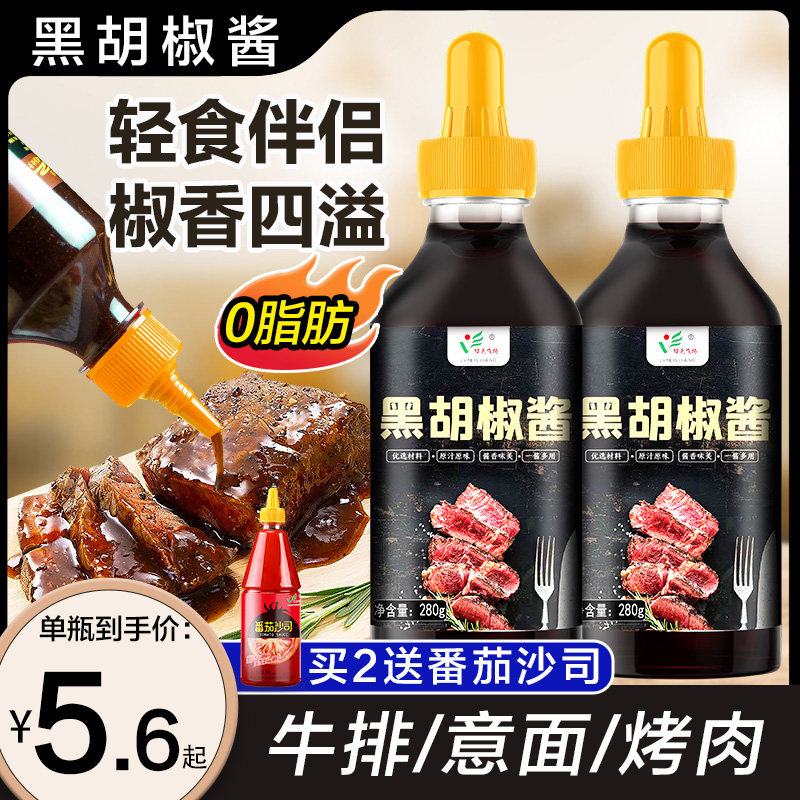 黑胡椒酱牛排酱专用0脂肪酱汁黑椒酱黑椒汁意大利面酱调料意面酱