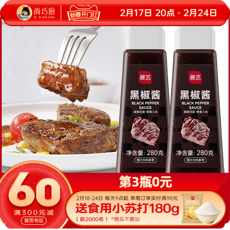 尚巧厨展艺黑胡椒酱低减0脂黑椒酱牛排烤肉汁商用意大利面拌面酱