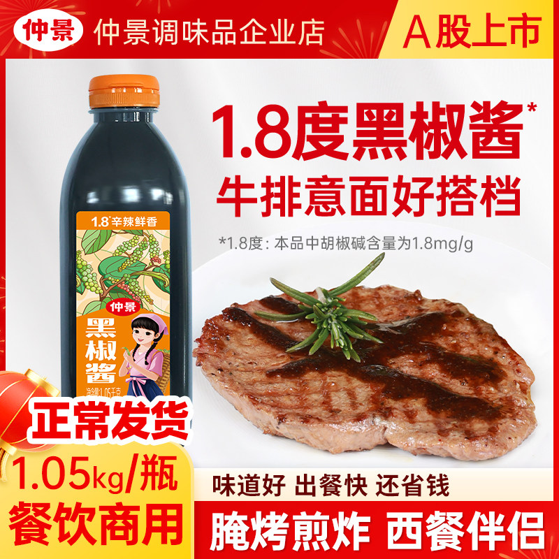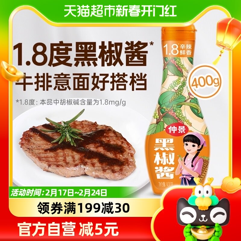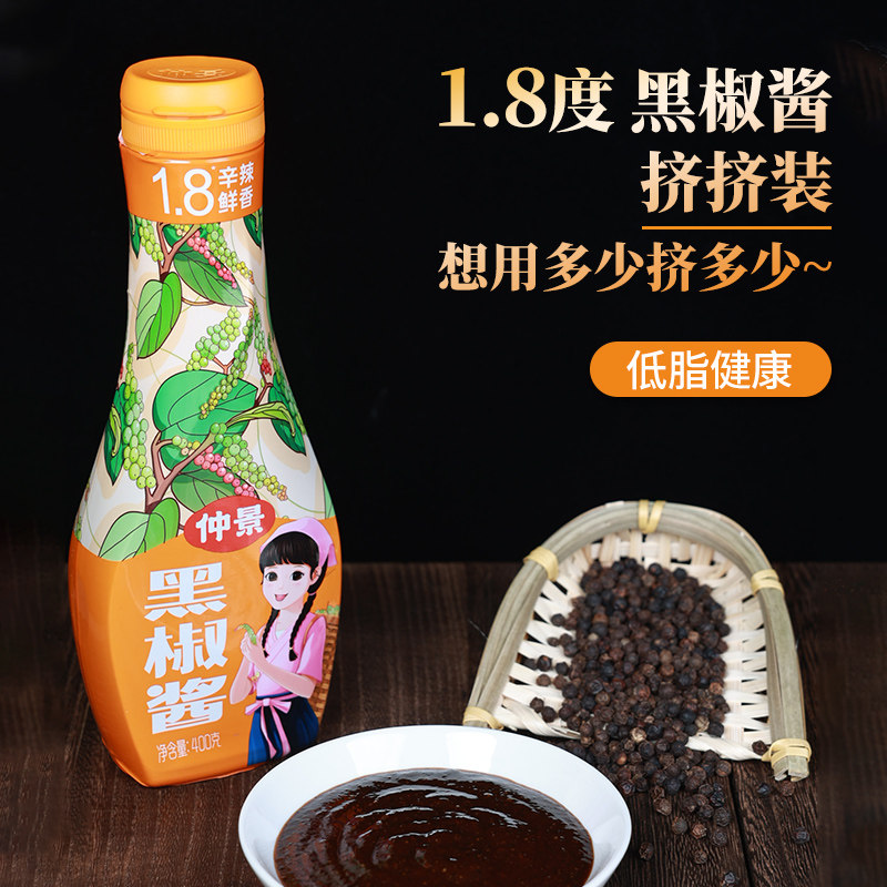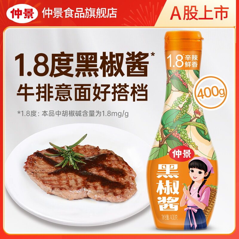 包邮仲景黑胡椒酱400g牛排意大利面酱黑椒汁烤肉烧烤蘸料拌面酱