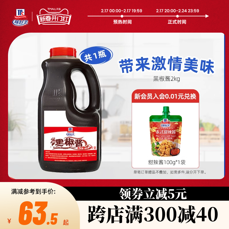 正品味好美经典黑椒酱2kg即食 牛排酱黑胡椒汁意大利面调料烧烤酱