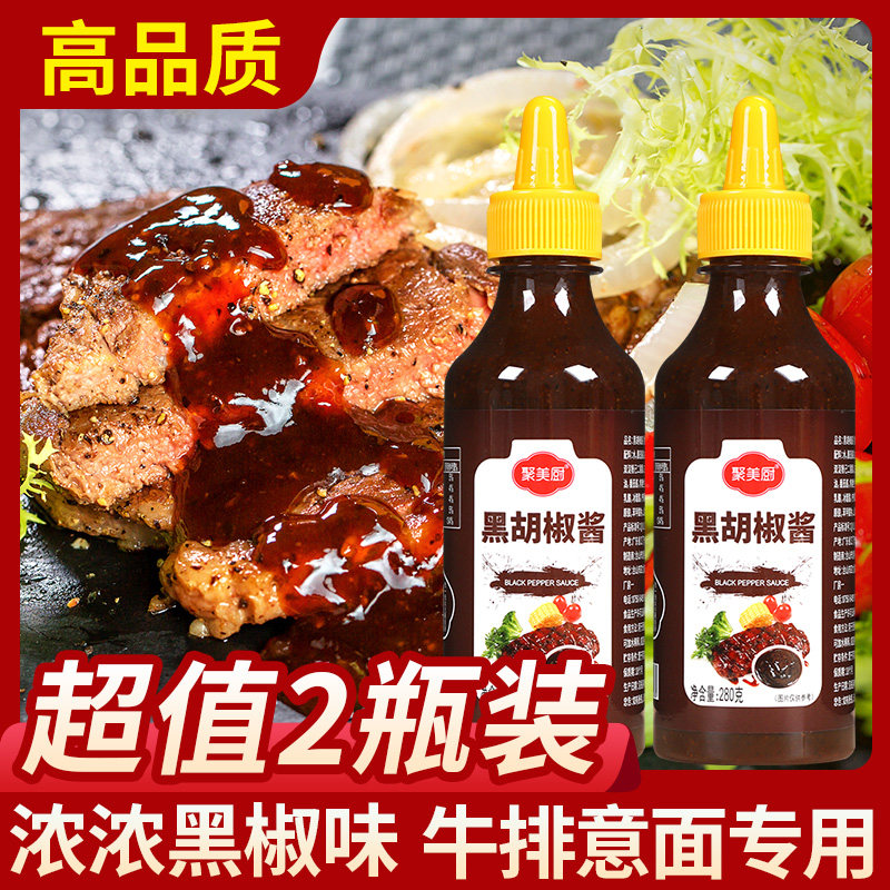 黑胡椒酱280g*2瓶 意大利面酱手抓饼酱黑椒酱烤肉酱黑胡椒汁家用