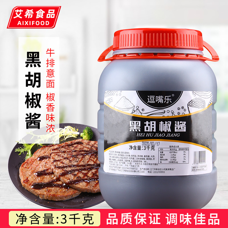 逗嘴乐黑胡椒酱3kg 桶装黑椒汁烤肉拌饭牛排意面酱手抓饼调味酱