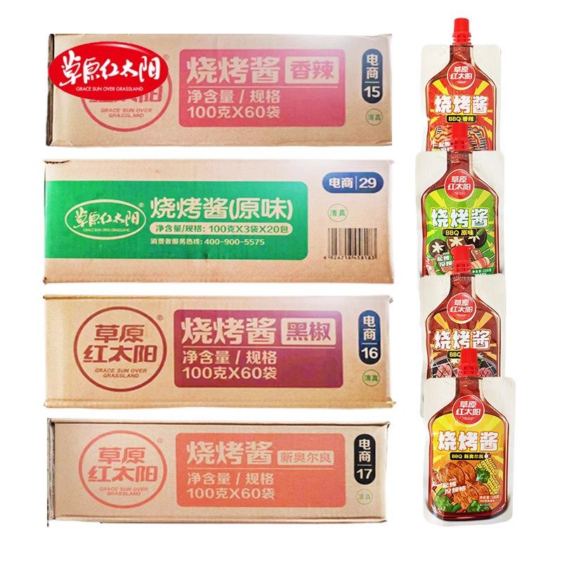 草原红太阳烧烤酱100g整箱原味烤肉酱黑椒香辣奥尔良烤肉串调味料