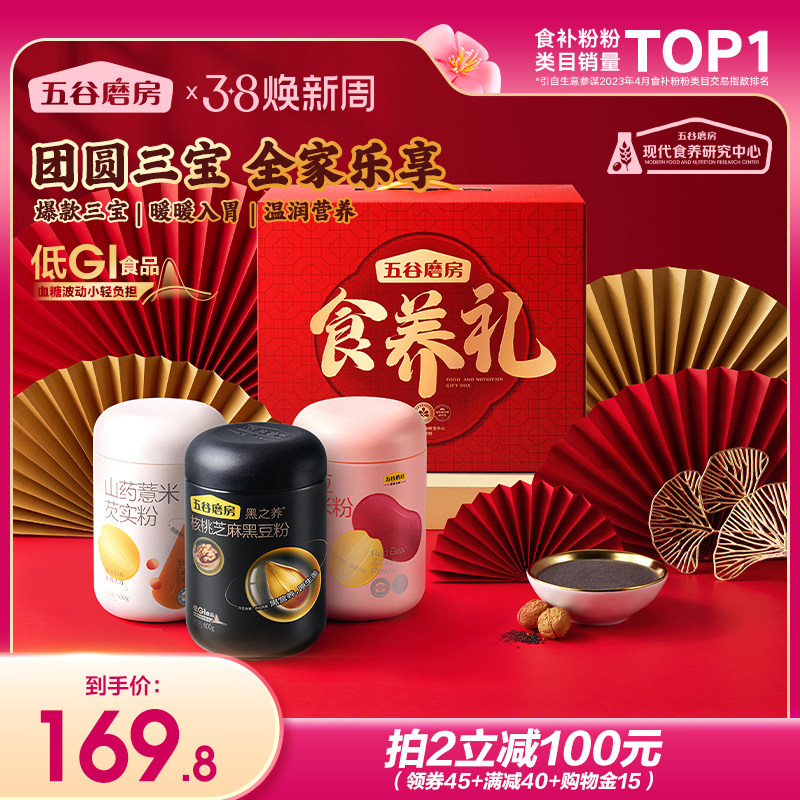 五谷磨房团圆三宝礼盒黑芝麻糊山药粉送礼送长辈薏米粉节日礼盒