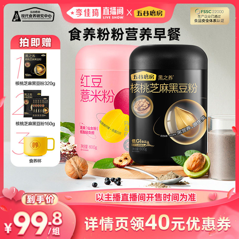 黑芝麻糊核桃黑豆粉红豆薏米粉五谷粗粮熟即食品营养代餐早餐饱腹