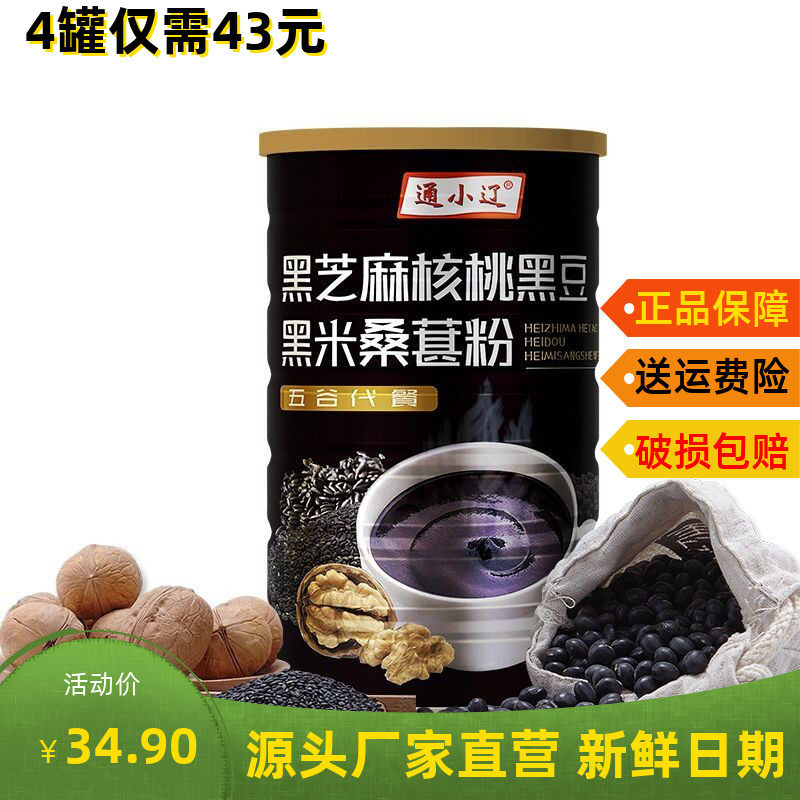 通小辽买1发4黑芝麻核桃桑葚黑豆黑米粉黑芝麻糊代餐冲饮即食熟粉