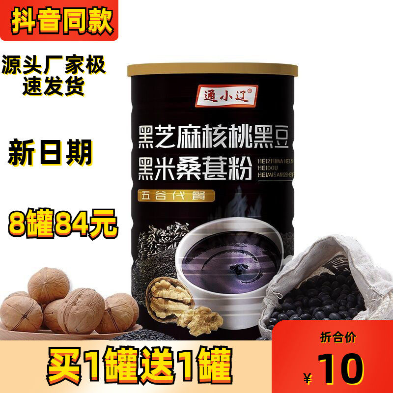 通小辽买2发4黑芝麻核桃桑葚黑豆黑米粉黑芝麻糊代餐冲饮即食熟粉