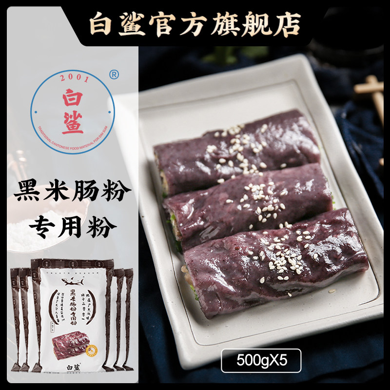 白鲨 黑米肠粉粉家庭装 广东粗粮肠粉粉水磨粘米粉烘焙原料500g*5