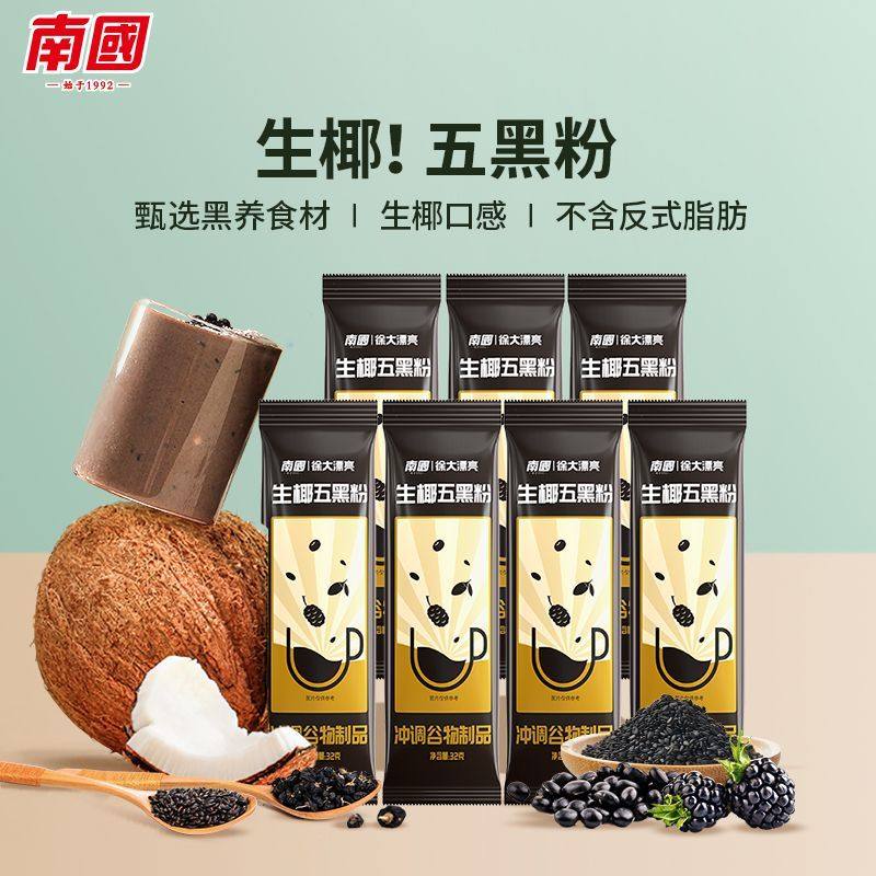 海南特产南国生椰五黑粉224g椰浆早餐代餐粉黑芝麻桑葚黑豆黑米粉
