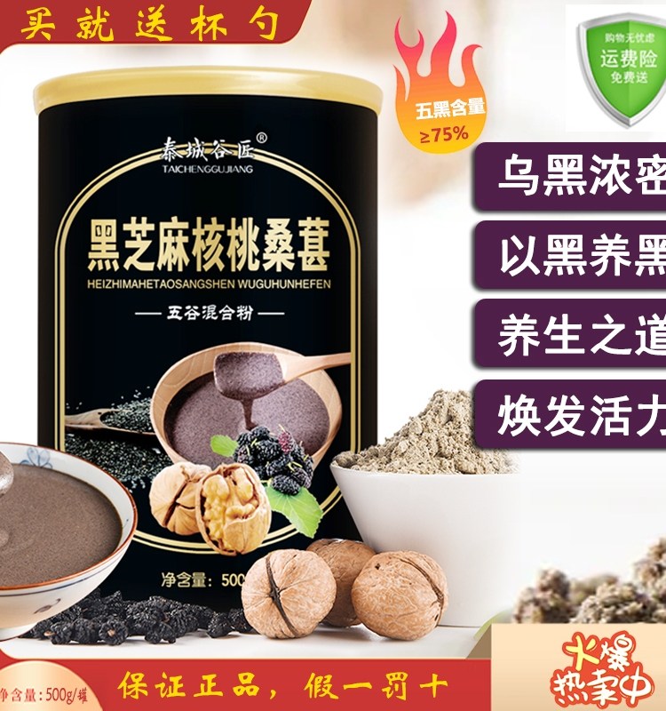 食疗新配方现磨黑芝麻核桃粉红枣枸杞黑豆黑米粉五谷粉对头发好