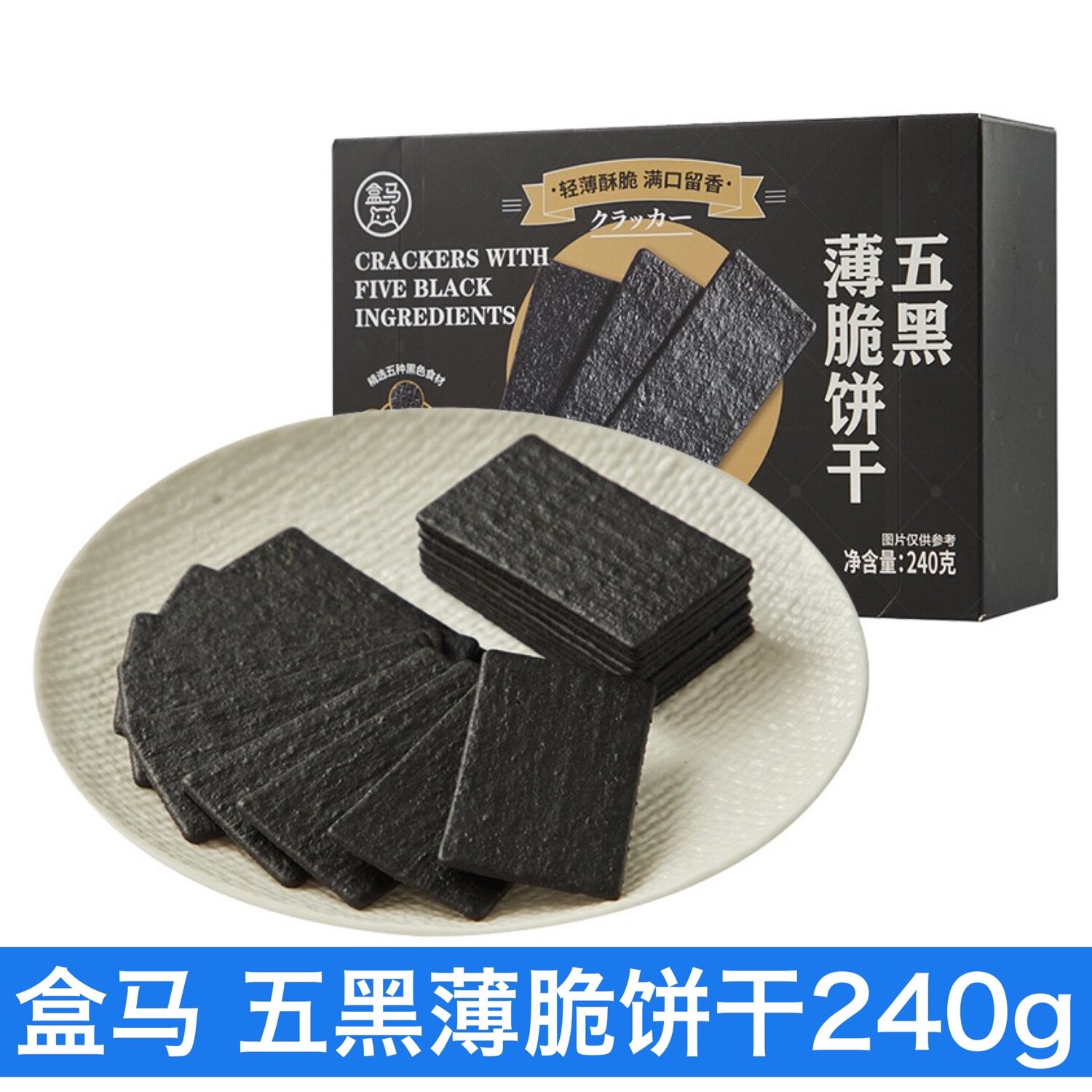 盒马五黑薄脆饼干240g含膳食纤维黑米粉黑豆粉黑麦粉黑芝麻黑枸杞