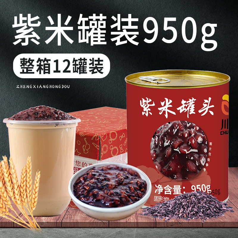 川资紫米罐头950g血糯免煮即食黑米粥烘焙原料奶茶店专用一箱12罐