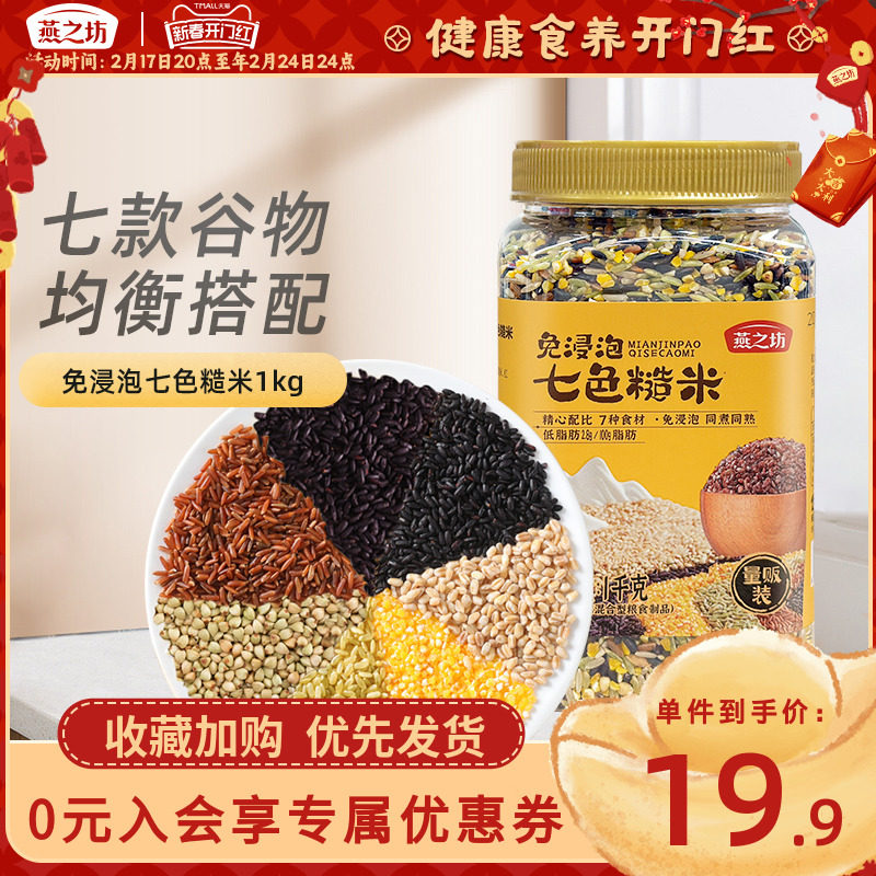 【燕之坊_免浸泡七色糙米2斤】五谷杂粮粗粮八宝米饭糯煲粥黑米
