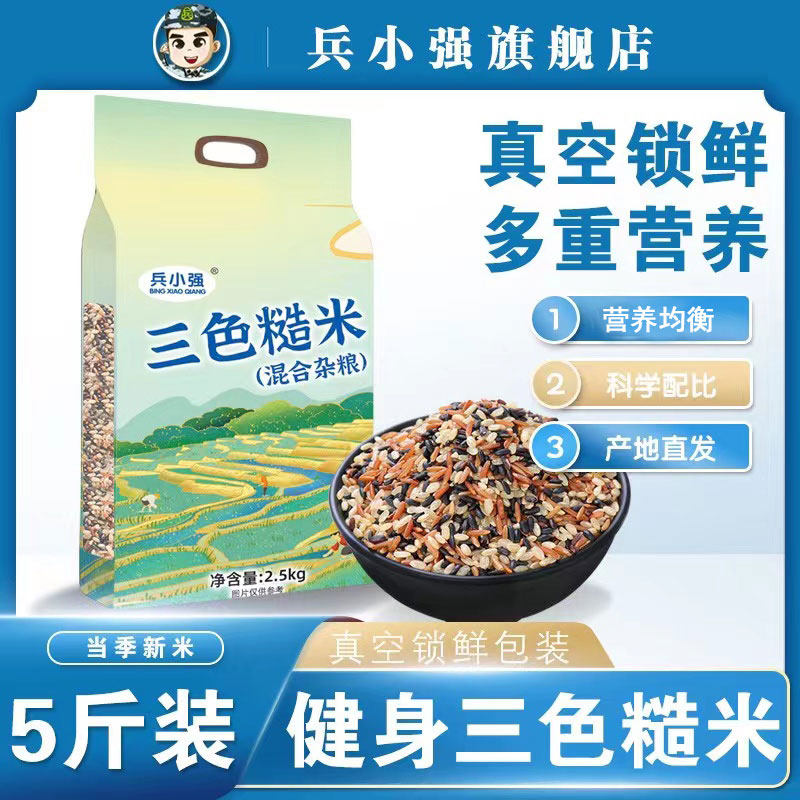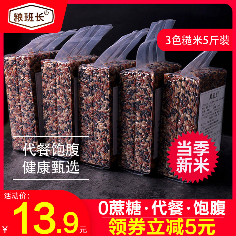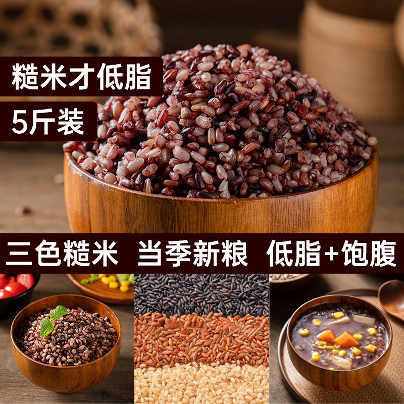 三色糙米低脂新米5斤五谷杂粮糙米饭黑米红米健身胚芽粗粮饭大米