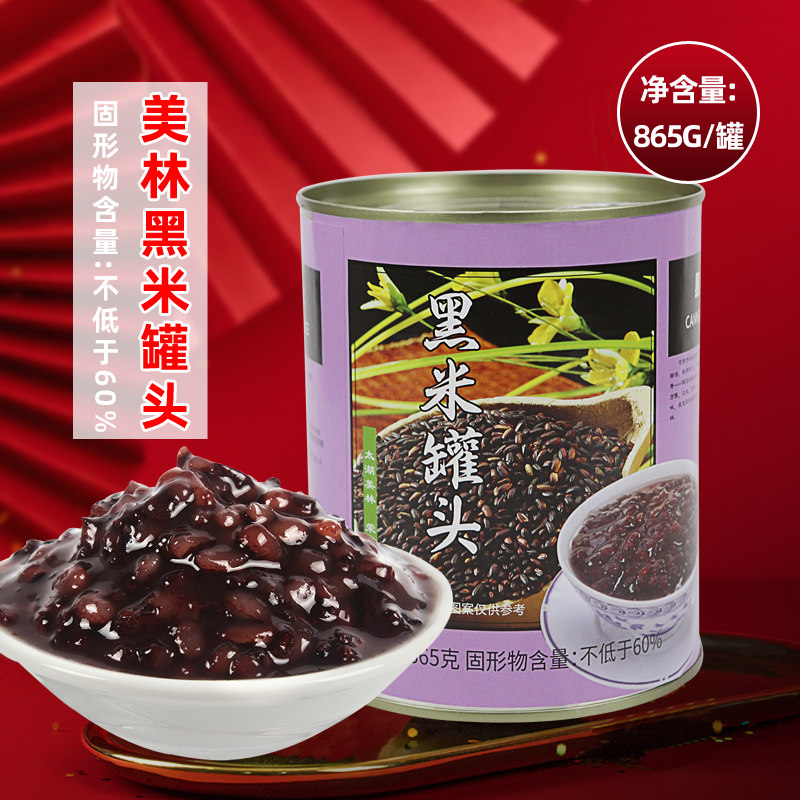 太湖美林黑米罐头865g开罐即食血糯米紫米黑米罐头阿姨奶茶用