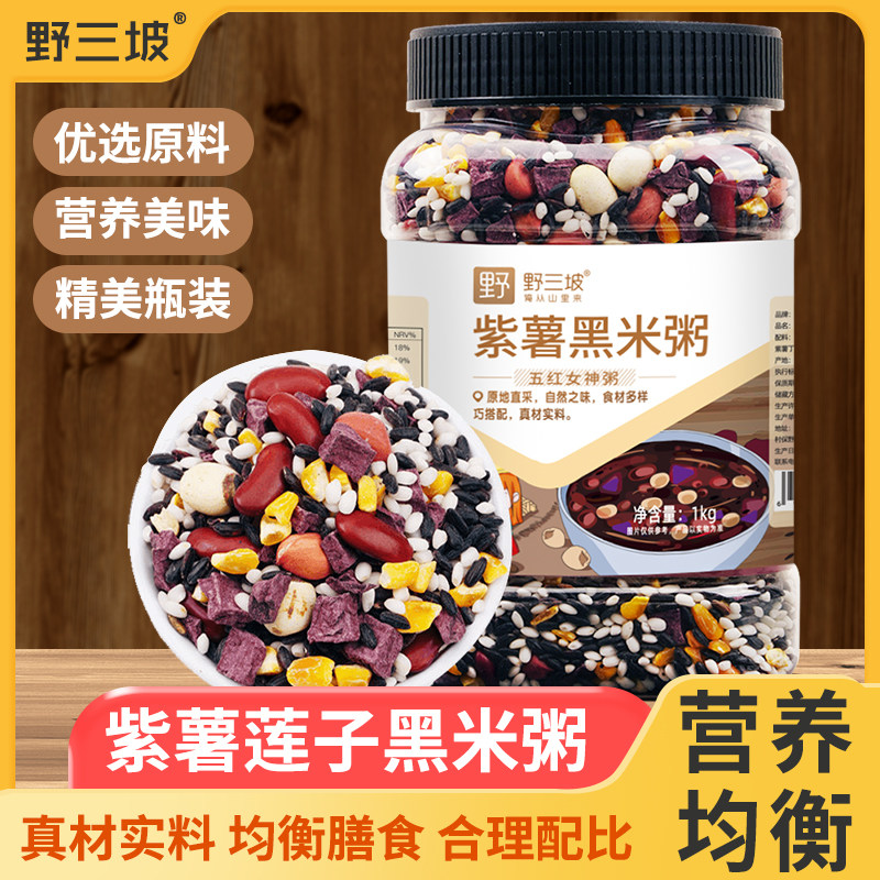 野三坡紫薯黑米粥五谷粥杂粮粥1kg罐装孕妇杂粮粥五红汤八宝粥