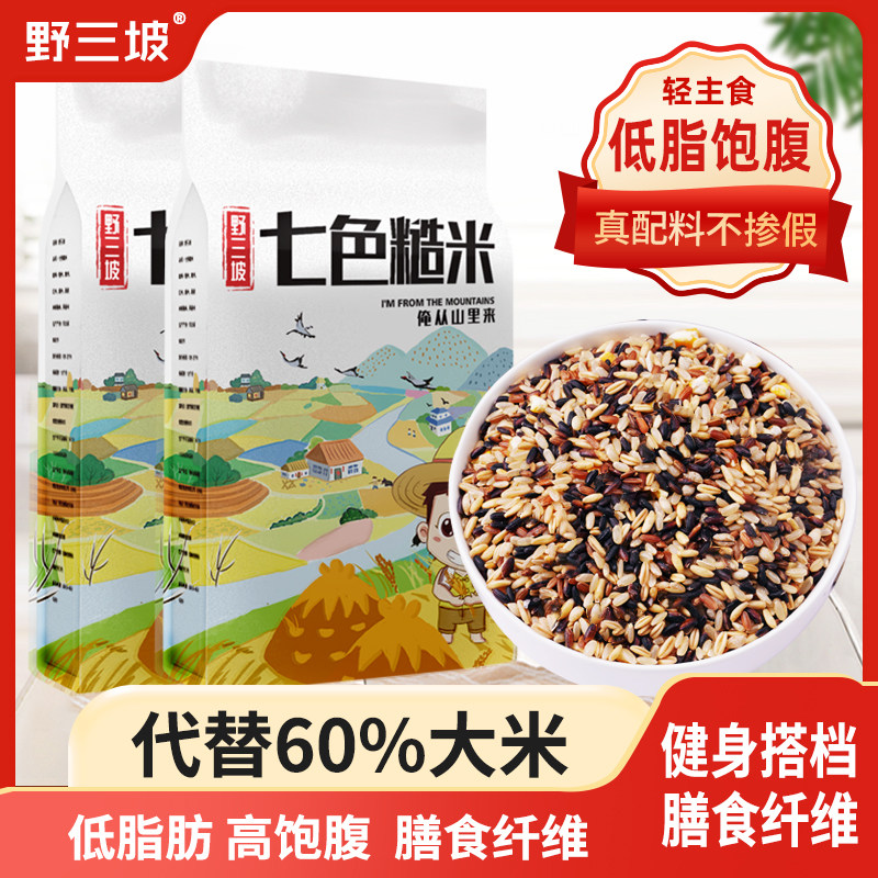 低脂七色糙米1.5kg东北五谷杂粮粗粮饭黑米红米糯米健身轻食主食
