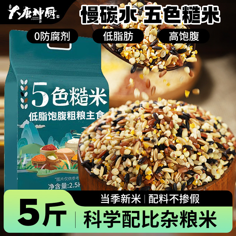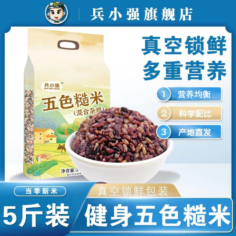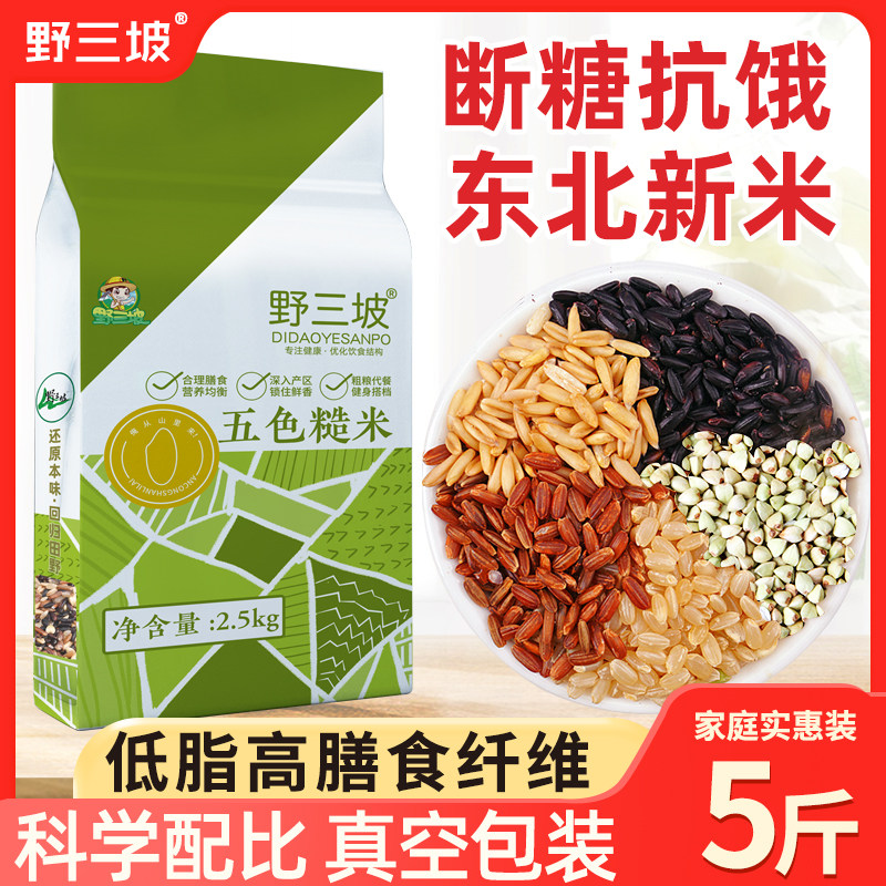 五色糙米5斤低脂粗粮大米黑米主食饭新七色五谷杂粮孕妇三色健身