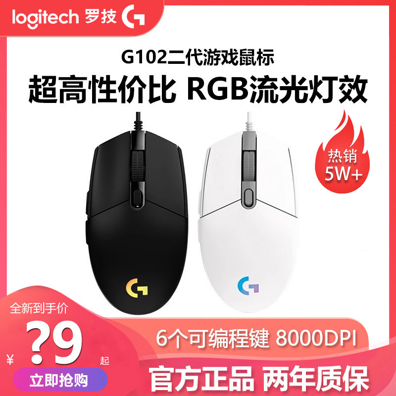 罗技g102二代游戏鼠标有线RGB背光吃鸡宏电脑外设lol电竞专用拆封