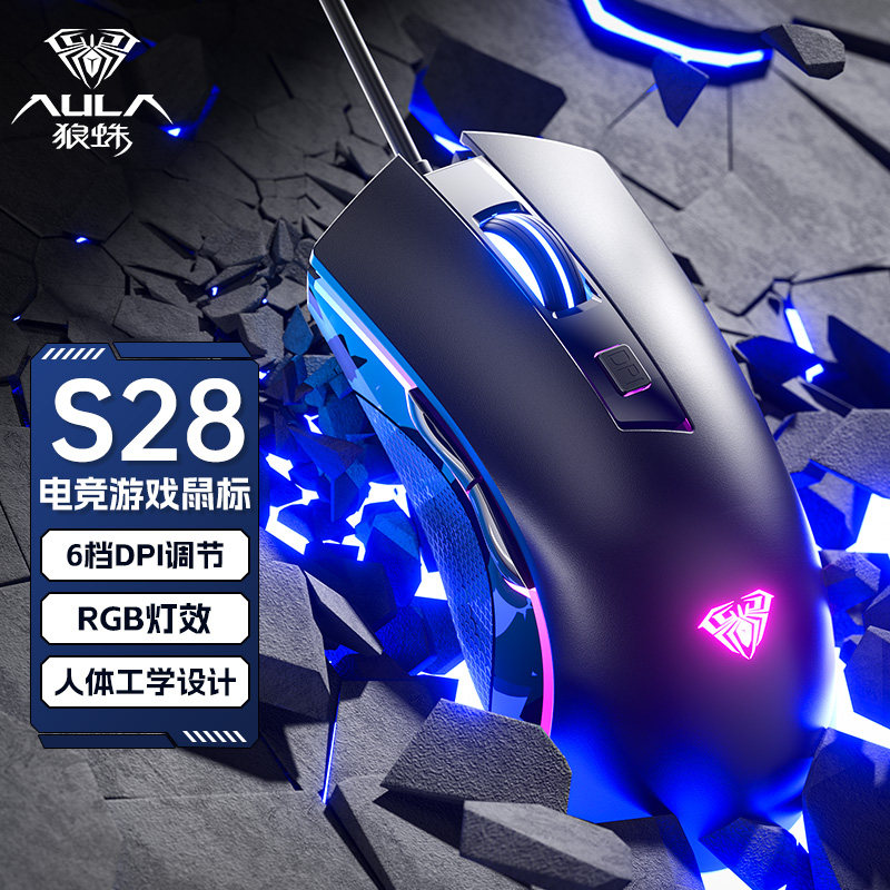 狼蛛S28鼠标有线电竞游戏专用宏编程RGB炫酷发光台式笔记本通用