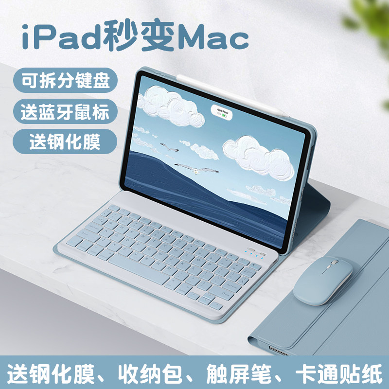 2021款苹果iPad9蓝牙键盘一体保护套mini6磁吸第五六代9.7寸无线鼠标套装air5/4带笔槽Pro11便携12.9寸平板壳