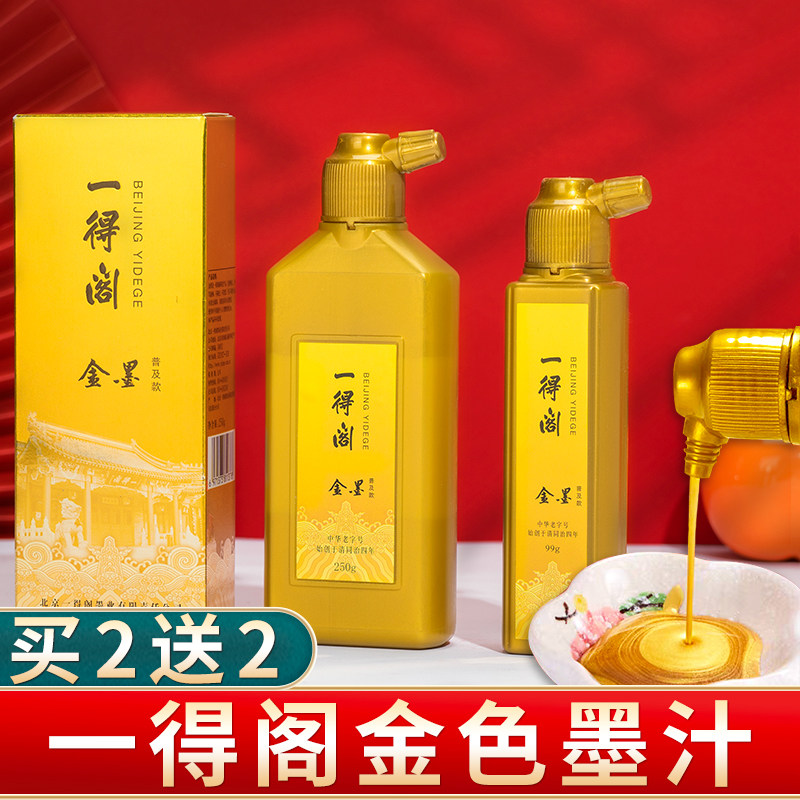 一得阁金墨汁99g 毛笔书法国画春节写对联专用金色墨水墨汁书画小楷金粉金色书法金墨汁墨液正品包邮瓶装
