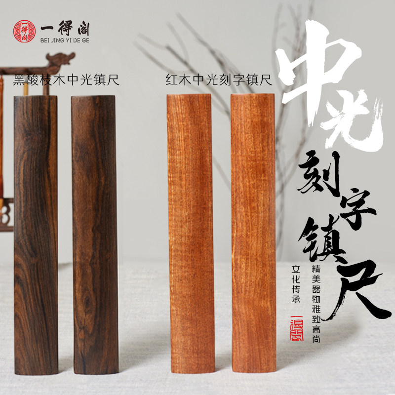 (一得阁官方旗舰店)一得阁草花梨中光镇尺黑酸枝中光镇尺实木镇纸文房四宝墨汁毛笔书法压条宣纸作压纸桌器