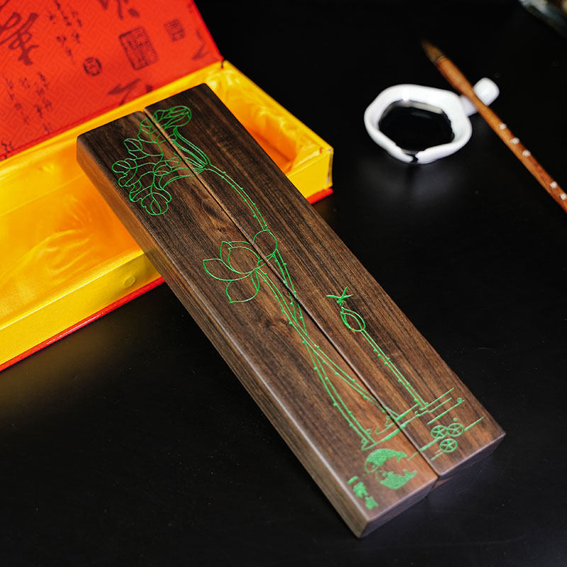 一得阁黑酸枝荷花镇尺文房四宝书法文房用品毛笔书法绘画压纸镇雕刻礼盒装加厚加重学生初学者成人专用