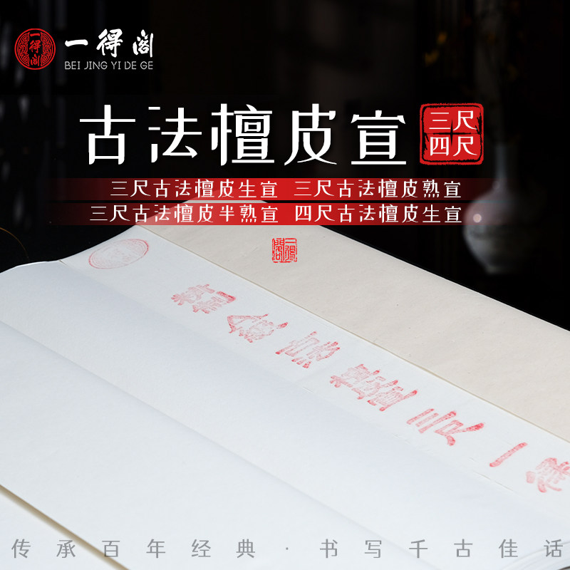 一得阁安徽泾县仿古精品檀皮宣纸毛笔书法国画创作专用作品纸三尺四尺古法生宣半生宣熟宣