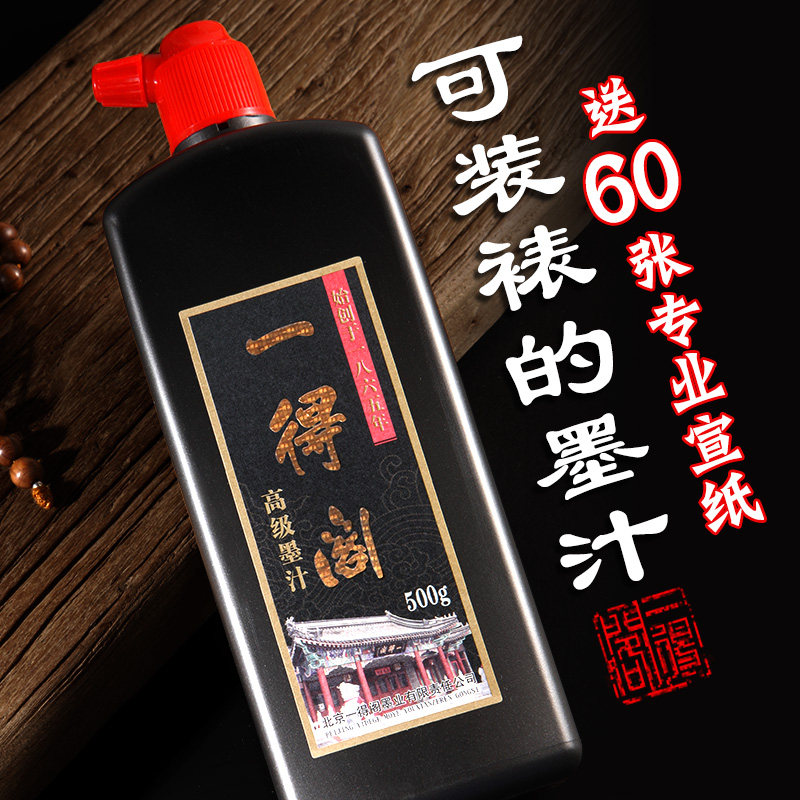 一得阁手作珍藏墨汁250g书法国画专用创作绘画毛笔墨水500g大瓶骨胶油烟墨初学者成人收藏款文房四宝笔墨纸砚