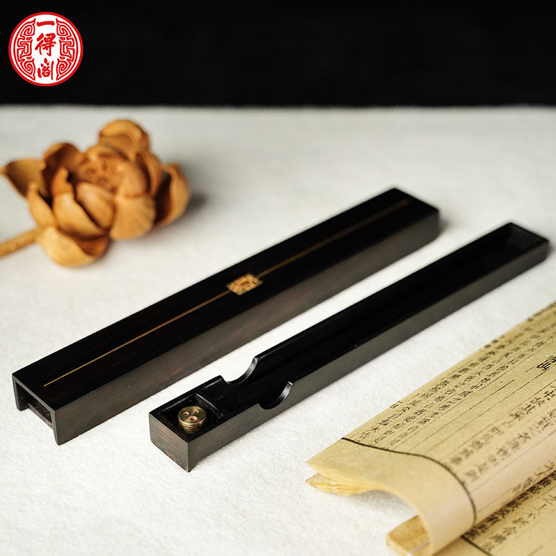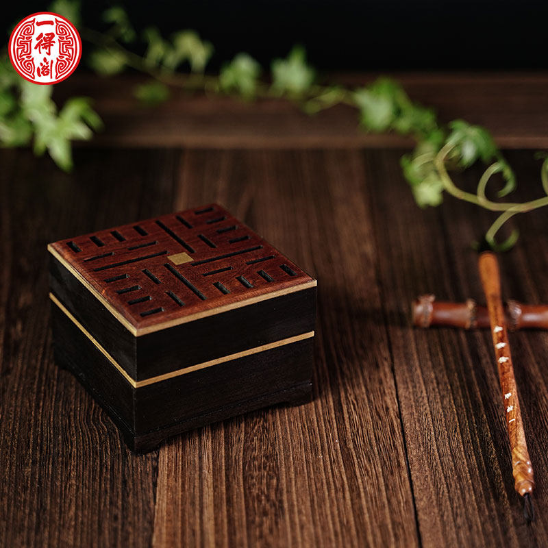 一得阁和合《窗影-双层盘香盒》红木香盒文房 笔墨纸砚套装礼盒专业成人初学者便携书法用品砚台毛笔宣纸