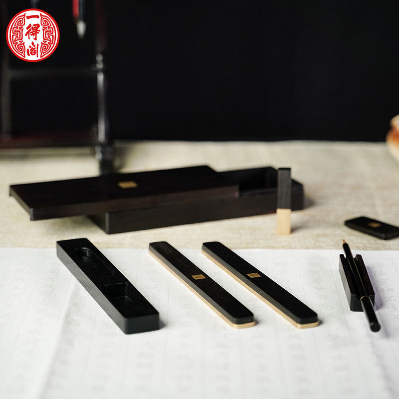 一得阁正品 墨块墨条五石漆烟墨文房四宝砚台用磨墨墨块正品天然墨锭 古法1.2两礼盒装毛笔书法国画墨汁墨水