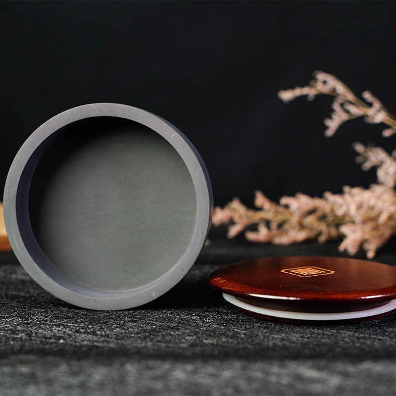 一得阁火锅砚台文房四宝书法专用带盖强密封多功能天然石料墨汁保湿双圈设计平底罗纹砚台