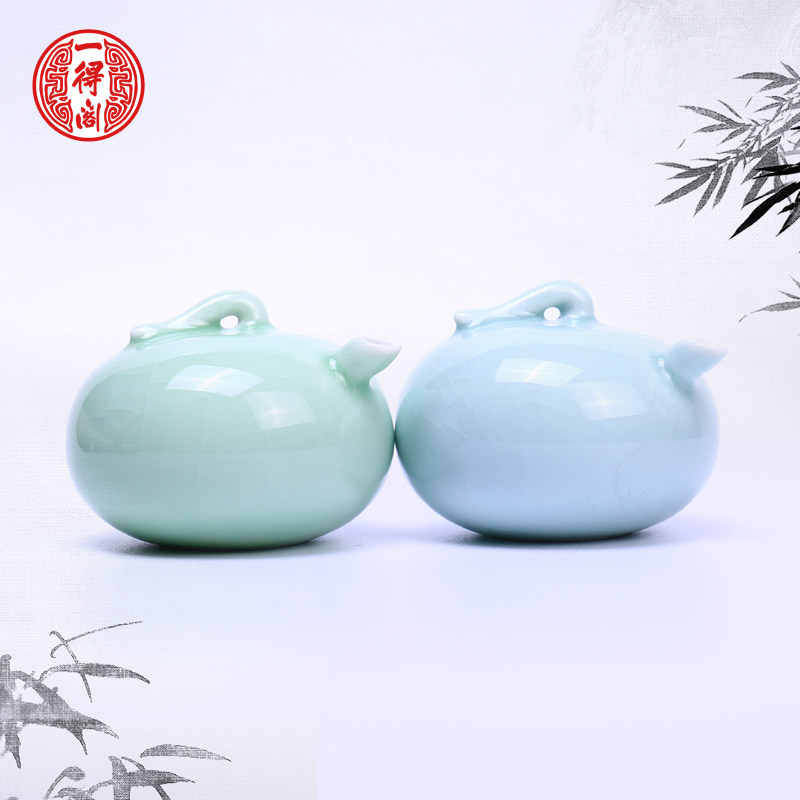 一得阁董陶窑水滴磨墨研墨实用陶瓷砚滴青瓷书法国画用品冰裂开片釉玉壶砚台水滴文房四宝笔墨纸砚官方旗舰店