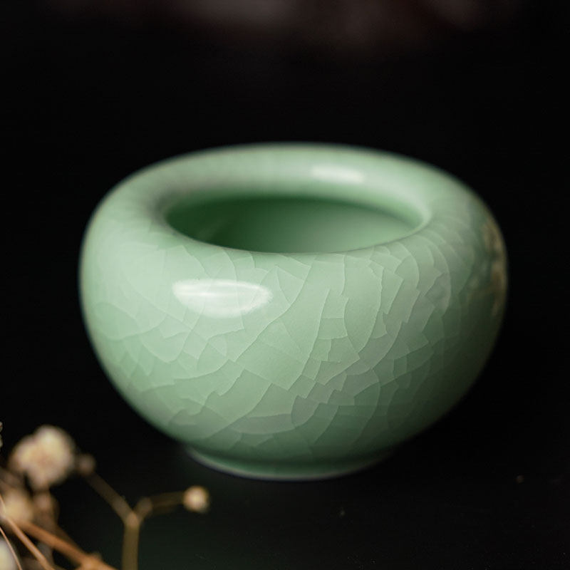 一得阁陶瓷水盂砚台添水用汝窑陶瓷笔洗书法绘画初学者文房四宝仿