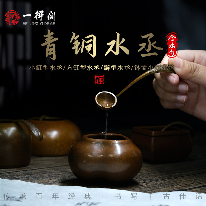 一得阁小缸型水丞/含水勺水丞铜器摆件迷你青铜滴水滴复古砚台磨墨加水小号水盂水丞练字送礼存水罐水洗砚滴
