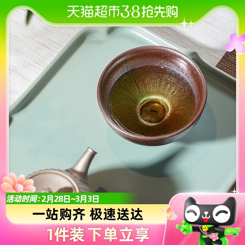 万仟堂高档建盏南平手工建盏单杯主人杯油滴盏束口形正品建盏曜变