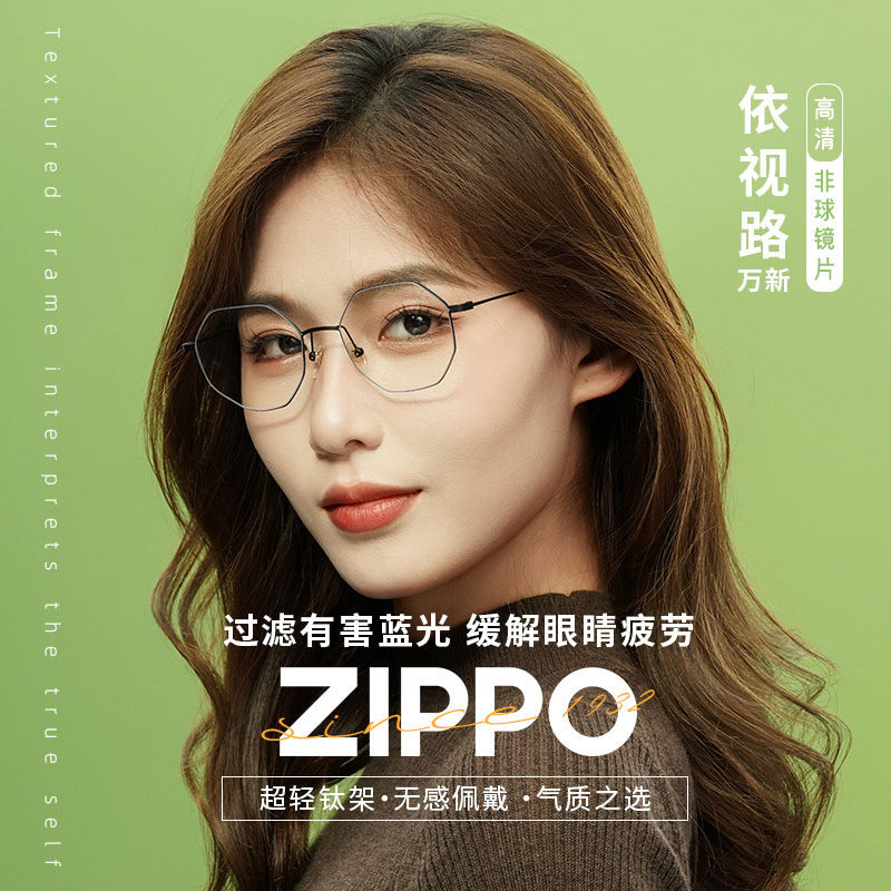 Zippo近视眼镜框配万新素颜超轻近视镜显脸小防蓝光镜片ZBG23008