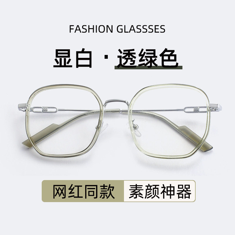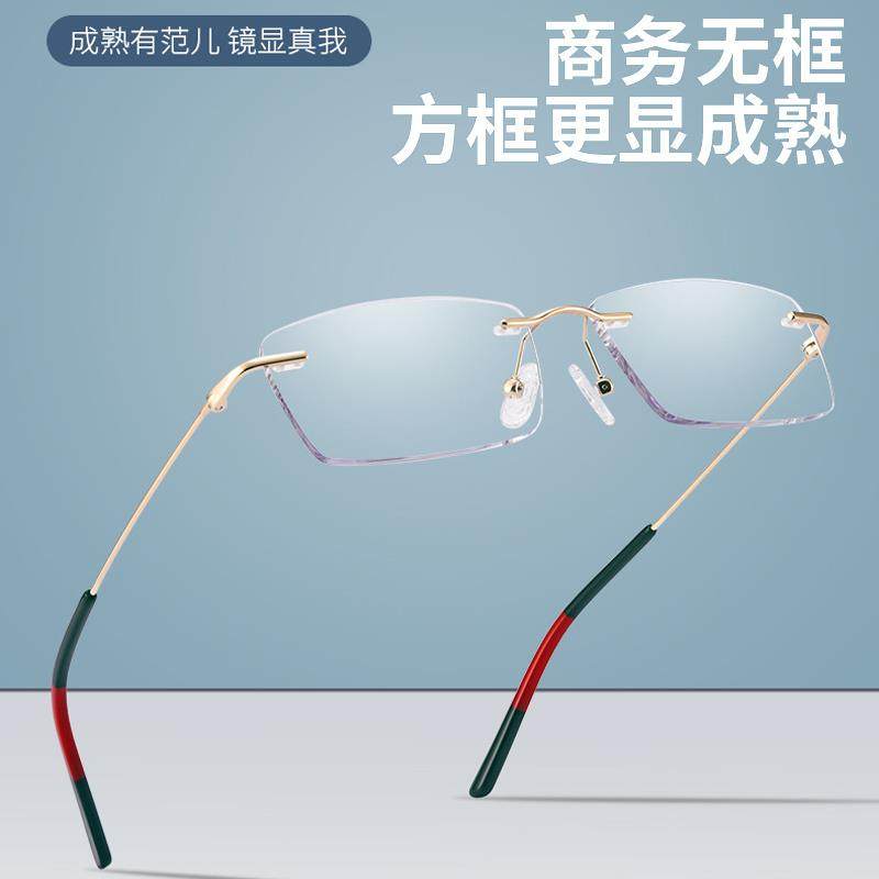 万新镜片2022新款个性无框眼镜男素颜大框网红大脸显瘦彩虹镜腿