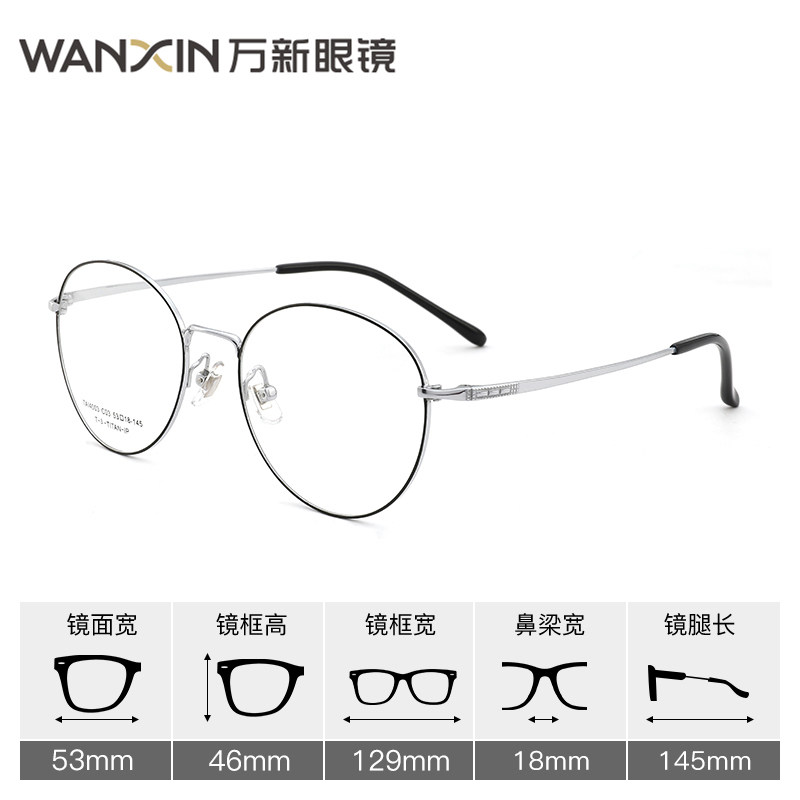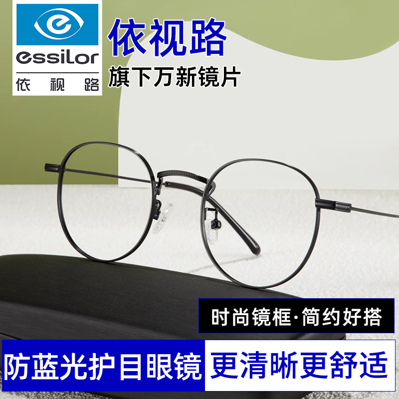 依视路旗下万新防蓝光圆框可配近视眼镜女小框复古文艺护眼睛男款