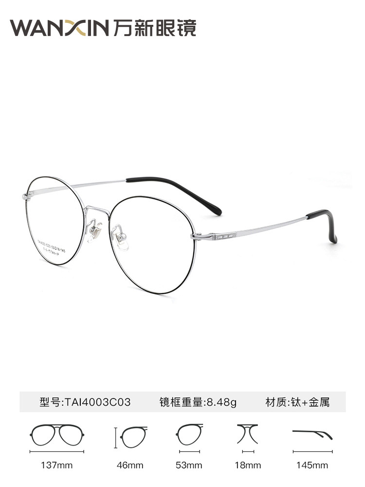 万新防蓝光变色超轻钛镜框防辐射电脑疲劳男女护目平光眼镜4003