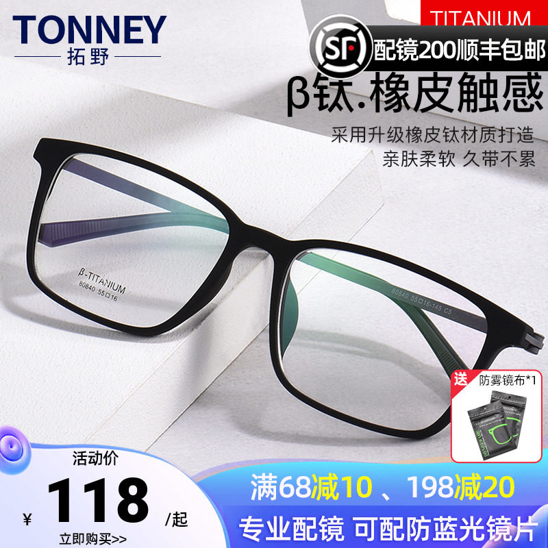 拓野近视万新眼镜框男钛架可配度数加散光网上配镜男潮黑框80840