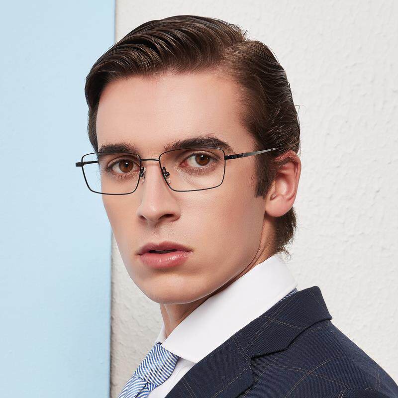 近视眼镜商务休闲简约方框金属架轻盈舒适近视眼镜架框配万新镜片