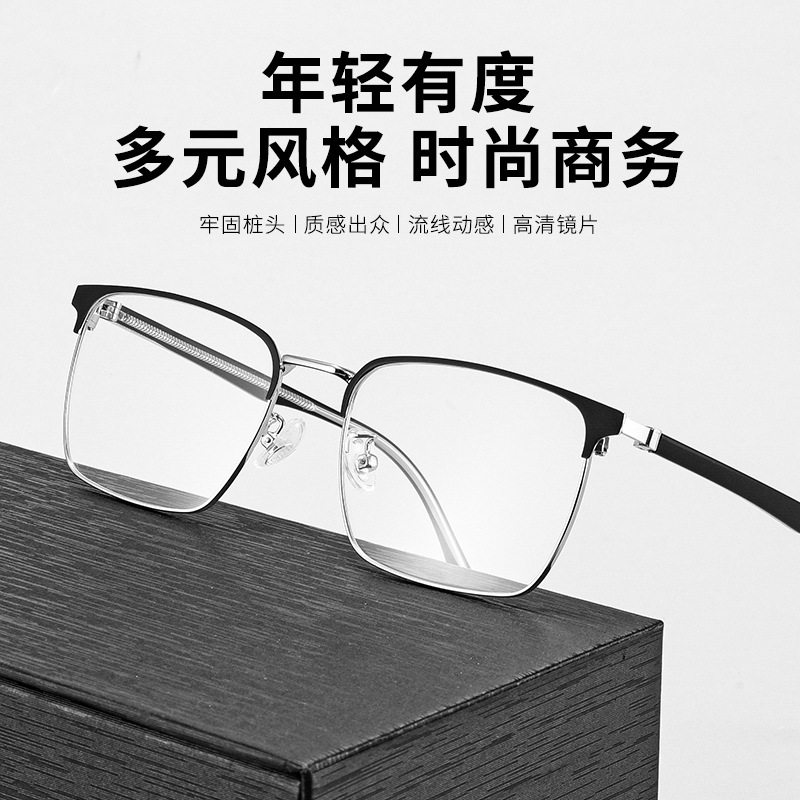 新款金属近视眼镜框男商务舒适大框镜架钛合金眼镜方框配万新镜片