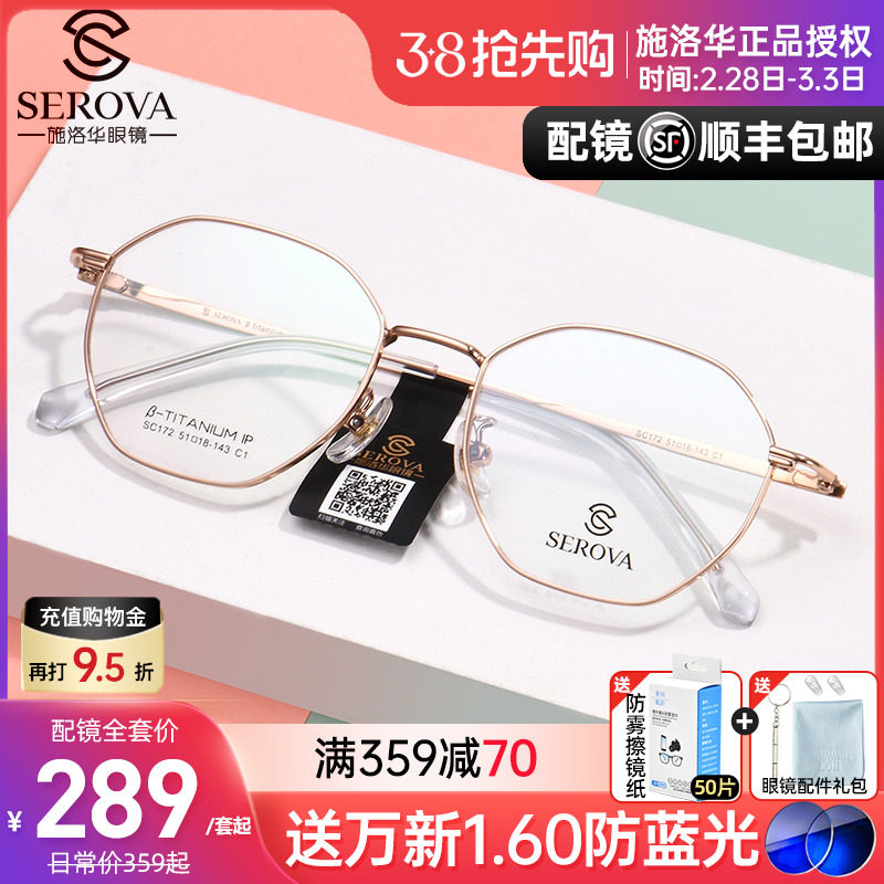 施洛华近视眼镜框钛合金多边形显脸小圆脸女配万新防蓝光男SC172